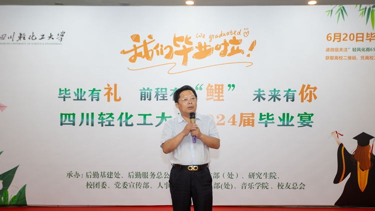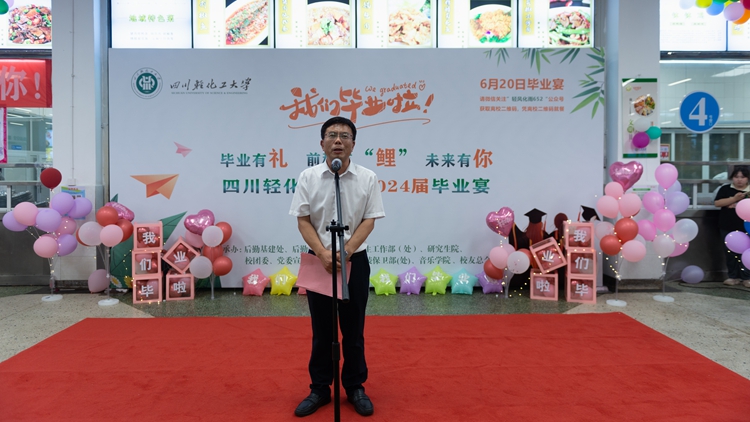 六月的情怀、四年的相知。在送别2024届毕业生之际,学校党委书记张力,党委副书记陈一君,党委常委、副校长高小林来到活动现场祝愿毕业生们鲤跃龙门,未来可期,在人生的舞台上绽放属于自己的光辉。并寄语全体毕业生“一道道佳肴呈现的不仅仅是美味,是在炎炎夏日送上的一份份夏日清凉,更是学校对大家最美好的祝福,承载着川轻化的记忆,带着这份美好,去开启崭新的人生!当然,不论走多远,都要常回家看看!”