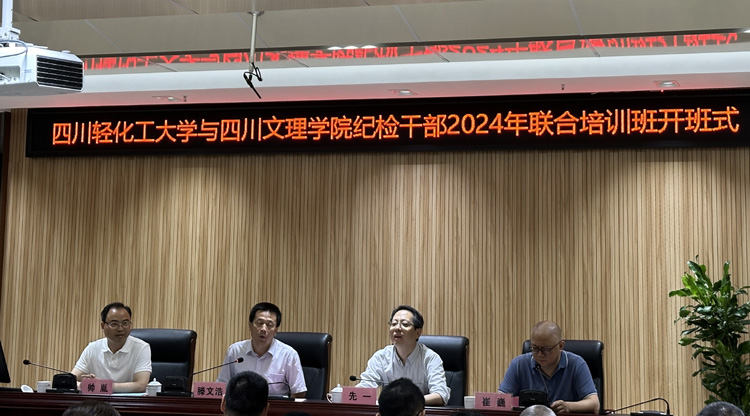 省纪委监委驻四川轻化工大学纪检监察组组长,四川轻化工大学党委副书记、纪委书记先一,省纪委监委驻四川文理学院纪检监察组组长,四川文理学院党委副书记、纪委书记帅胤,省纪委监委驻四川师范大学纪检监察组组长、四川师范大学党委副书记、纪委书记滕文浩出席了培训开班式。