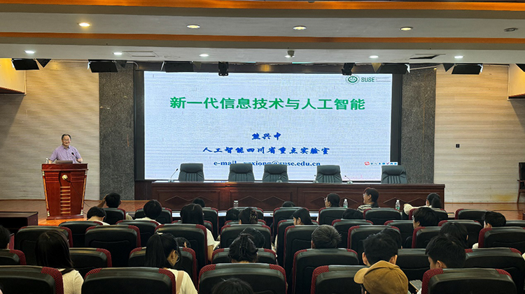 研究生院院长、自动化与信息工程教工第二党支部博士团队负责人熊兴中教授以“新一代信息技术与人工智能”为题,为阿坝师范学院师生带来了一场精彩的学术报告。