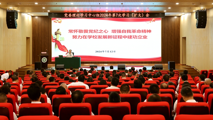 7月12日下午,学校在李白河校区学术报告厅组织召开党委理论学习中心组2024年第7次学习(扩大)会,开展党风廉政建设和反腐败工作专题学习。党委书记张力主持学习会,全体党委常委、全校副处级以上干部参加学习。