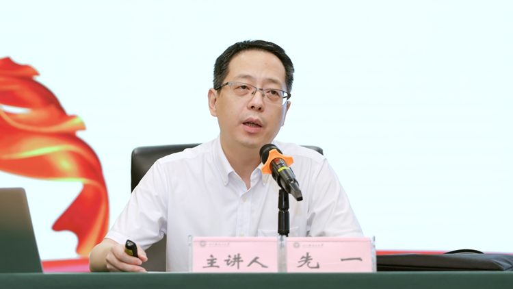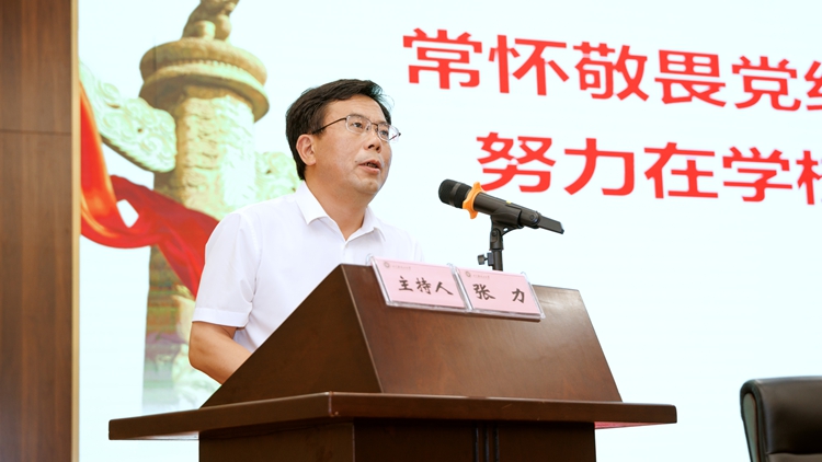 省纪委监委驻校纪检监察组组长,学校党委副书记、纪委书记先一以《常怀敬畏党纪之心,增强自我革命精神,努力在学校发展新征程中建功立业》为题,为与会人员讲授党纪学习教育纪律党课。先一围绕“从党的纪律建设百年历程中深刻认识加强党的纪律建设的重要性、从当前党风廉政建设和反腐败斗争面临的形势和任务中深刻认识加强党的纪律建设和必要性、准确理解和把握《条例》规定的行为边界、以《条例》为准绳,准确处理好四大关系”等几个方面讲授。党课内容条理清晰,数据详实,针对性、实践性都很强,对党员干部学好党纪、用好党纪有很好的指导作用。