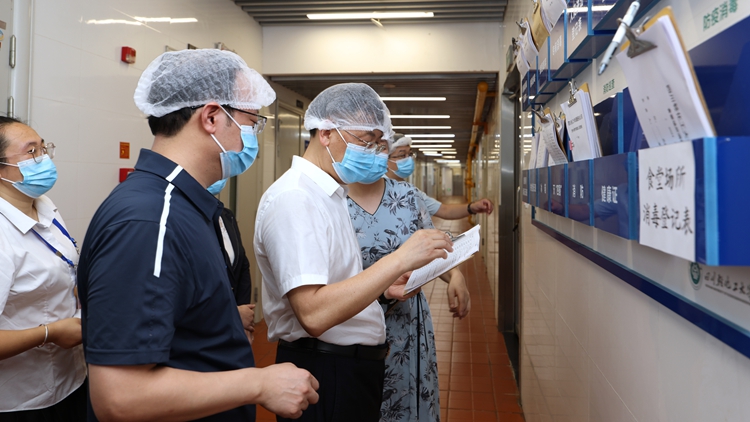张澜涛一行深入学校学生公寓、食堂、警务服务中心、实验室、盐都大剧院、音乐厅等场所,对消防设施是否完善,消防通道是否畅通,食堂的卫生状况、食材来源、食品加工流程,实验室的规章制度执行情况、实验设备的安全性能等情况进行了实地检查,并听取了相关汇报。