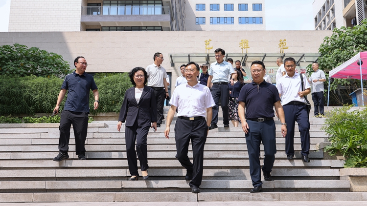 7月23日,四川省委教育工委副书记张澜涛一行在自贡市人民政府副市长周耘陪同下莅临我校李白河校区,开展暑期校园安全检查。校领导陈一君、胡光忠及学校相关职能部门负责人陪同参加检查工作。
