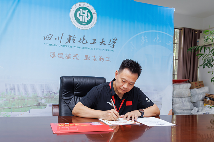 随后,庹先国来到录取通知书装寄现场,慰问了负责录取通知书装袋工作的志愿者,仔细询问了资料装袋的情况,并要求要认真细致、无差错地开展录取通知书的装袋工作,确保录取通知书能够顺利地送达每一位新生手中。庹先国亲笔填写了一份录取通知书,为这位新生写了一张明信片,并将该生的相关录取资料装袋。