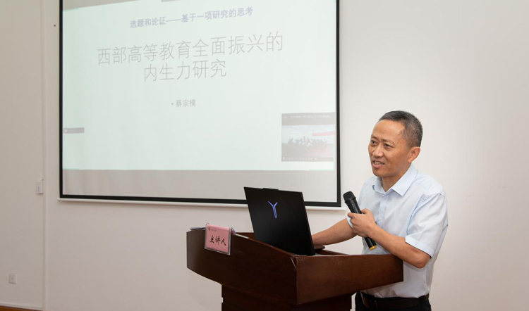 主题报告环节,蔡宗模教授作了“西部高等教育全面振兴的内生力研究”主题分享。他以编辑的视角,全面阐述了高质量学术研究的“三重境界”,即从新颖的观点到严谨的论证、再到反思与总结。蔡宗模指出,研究生应着眼于问题的三个层次:从最初的无问题意识,到逐渐明确并突出问题,最终选择重大研究价值和社会意义的课题。同时,他还详细阐述了问题打开的路径以及问题解决的方法。蔡宗模鼓励研究生们要积极投身于学术研究,不断探索与创新,为西部高等教育的全面振兴贡献青春才智。