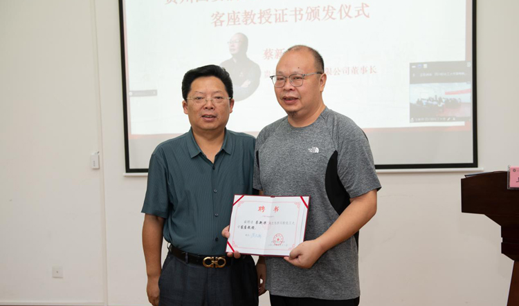 此外,为进一步深化校企合作,促进产学研深度融合,加速科技成果向现实生产力转化,高小林为贵州国晏酒业有限公司董事长蔡新华先生颁发了客座教授聘书,并表示希望未来能有更多像蔡新华先生这样的优秀企业家与四川轻化工大学携手并进,共同探索学术研究与产业发展新路径,为提升新质生产力,助推中国式现代化进程,服务中华民族伟大复兴贡献智慧和力量。