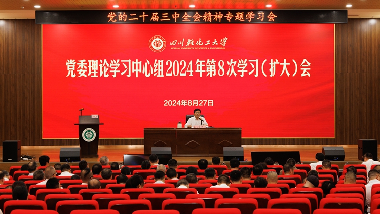 8月27日上午,学校党委理论学习中心组2024年第8次学习(扩大)会议在李白河校区办公中心学术报告厅举行,专题学习研讨了党的二十届三中全会精神。校党委常委,校属党委书记、学院院长、各职能部门主要负责同志(含临时负责人)参加会议。