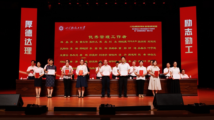 参加表彰大会的还有自贡市人民政府副秘书长韦媛媛、学校党政领导、处级干部、二级教授及三级教授、各学院系主任、实验中心主任、支部书记、受表彰人员、全体新教师、教师代表以及学生代表。