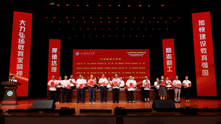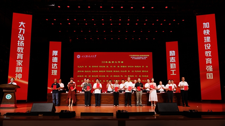 “三寸粉笔,三尺讲台系国运;一颗丹心,一生秉烛铸民魂。”9月10日下午,李白河校区盐都大剧院内掌声雷动,我校在此举行热烈庆祝第40个教师节暨五粮液奖教金表彰大会,向辛勤工作在教学、科研、管理、服务一线的广大教职员工致以节日的问候、衷心的祝福!