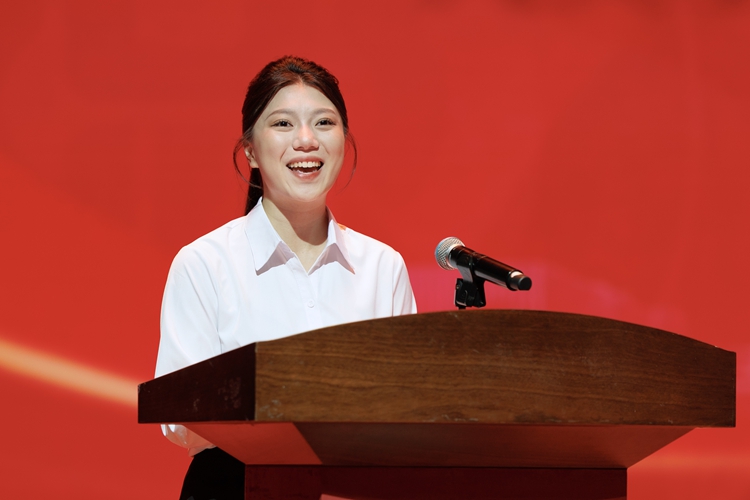 人文学院2021级广播电视学3班的补慧琳代表全校学生,向老师们致以崇高的敬意和节日的祝福!她细数了成长中的每一个足迹,都伴随着老师们辛勤耕耘的汗水与无私奉献的印记;取得的每一点成就,都凝聚着老师们默默地支持与不懈地鼓励。“感恩”是全体川轻化学子在这个特殊的日子里最想表达的心意,他们将以老师们为人生榜样,在探索与创新的征途中勇往直前,为实现中华民族伟大复兴的中国梦努力奋斗!