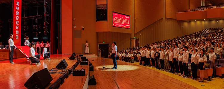 心中有信仰,脚下有力量。在这个热烈又值得纪念的日子,副校长高小林作为领誓人带领132名新教师在庄严的国旗下宣誓。这是一次源自初心和使命的灵魂洗礼,青年教师用一声声铿锵有力的誓言表达了自己投身教育事业的决心和信心,警醒自己牢记教师使命,时刻铭记教师职责。