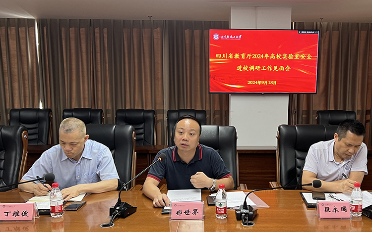 根据《四川省教育厅关于开展 2024 年高校实验室安全进校调研工作的通知》安排,9月18日上午,四川省教育厅高校实验室安全调研专家组在组长郑世界带领下一行6人,对我校实验室安全工作进行全面地调研和指导。