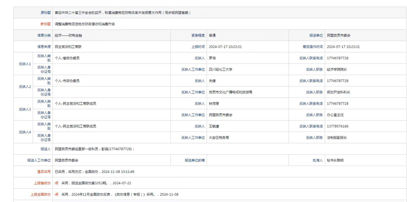 近日,我校省政协委员、民盟自贡市委会副主委、学校民盟主委、经济学院院长罗洎教授的资政建言成果《调整消费税促进地方财政增收和消费升级》被全国政协《政协信息》单篇专报采用,并转送中央主管领导及有关部委。