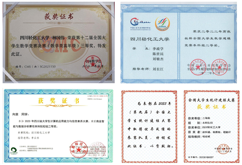 近五年,学院出版《线性代数》《概率论与数理统计(微课版)》教材2部;《数学建模》被认定为省级一流本科课程;主持完成省级教改项目1项;入选四川省普通本科高校课程思政教指委委员1人,四川省普通本科高等学校教学指导委员会数学类、统计类专业教学指导委员会委员各1人;发表教改论文30余篇;指导学生参加全国大学生数学建模、统计建模、大学数学等学科竞赛获省级及以上奖励224项。主持省部级及以上科研项目20余项,其他各类项目60余项,总经费880.42万元;发表SCI论文150余篇,其中ESI高被引论文5篇;获国际专利3项、发明专利4项,成果转化3项,获市级及以上科研奖15项。