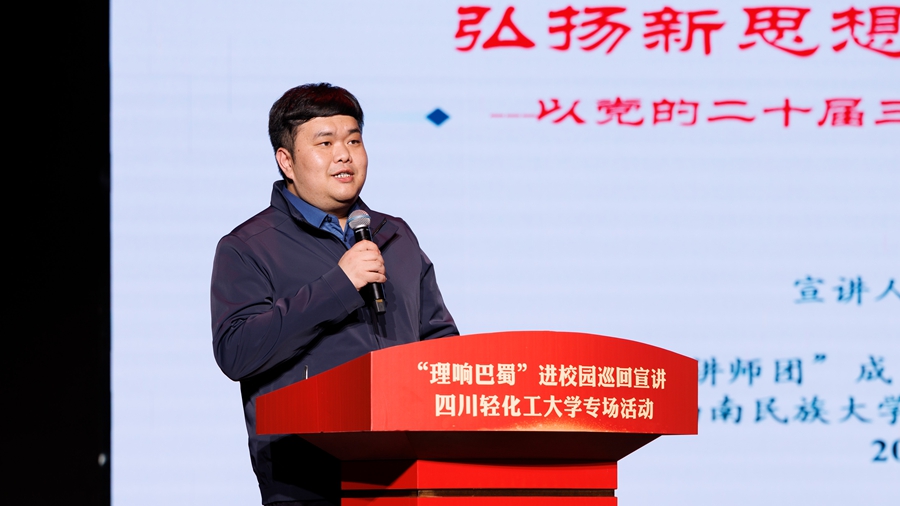 西南民族大学辅导员常华仁以《弘扬新思想 争当领路人》为题,从新时代青年的社会责任和使命出发,通过置身时代变迁,百年青运史明确新时代青年的历史使命;遵循成长规律,《习近平的七年知青岁月》是新时代青年成长的方法论指导;牢记领袖嘱托,《习近平与大学生们》是新时代青年成长的必备手册三个方面的讲述,强调青年应成为社会发展的推动者和引领者,勇于担当时代重任,积极参与社会建设,为构建和谐社会贡献力量。他的宣讲深入浅出,语言生动,赢得了现场师生的阵阵掌声。