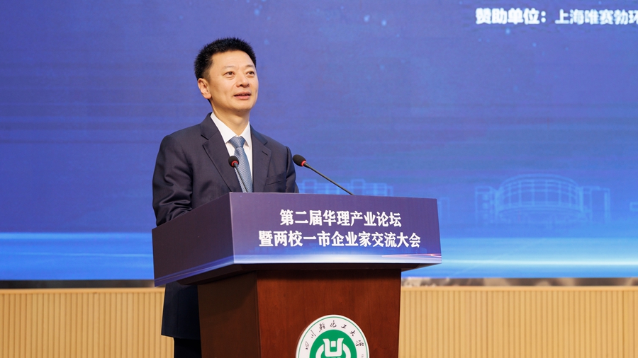 庹先国代表学校向与会嘉宾表示热烈欢迎,并简要介绍了学校近年来在学科建设、人才培养、科研创新与社会服务等方面取得的显著成果。他强调,此次论坛的举办,是推动学校迈向更高水平的重要契机,对促进校际合作、推动地方经济发展具有重要意义。他希望在宜宾市委、市政府的倾力支持下,在华东理工大学的倾心相助下,在各方企业和企业家的赋能成就下,四川轻化工大学能够在人才培养、学科建设、科学研究、文化传承、社会服务等方面更上层楼、再建新功,不负当年西迁之志,不负当下赓续之谊,为社会培养和输送更多高素质应用型和复合型人才,更好地服务地方经济社会高质量发展,为推进中国式现代化贡献更多智慧和力量。