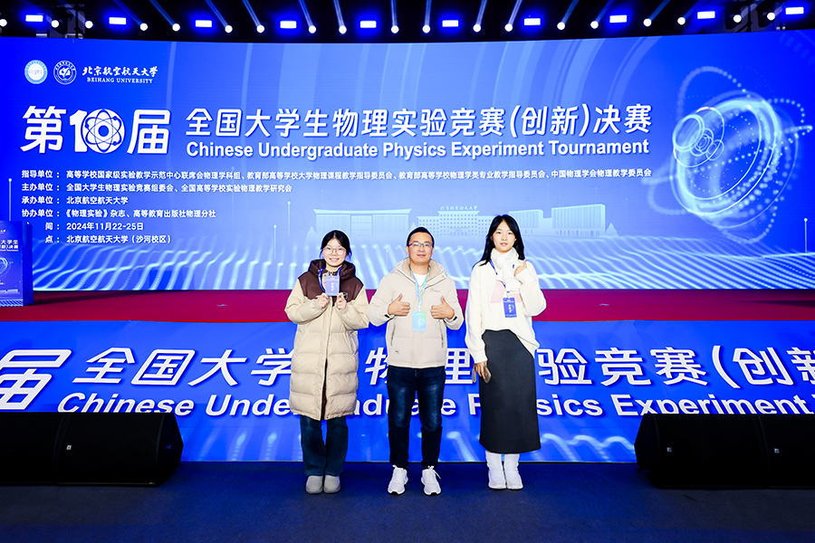 11月22日至25日,在北京航空航天大学举办的第十届全国大学生物理实验竞赛(创新)决赛中,我校师生勇夺一等奖两项、二等奖两项、三等奖一项,学校获优秀组织奖,实现我校在此项赛事中的新突破。