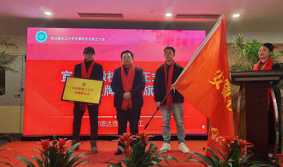 在热烈的掌声中,高小林宣布四川轻化工大学安徽校友会正式成立,并为校友会授旗、授牌,同时为会长、秘书长及理事会成员颁发了聘书。