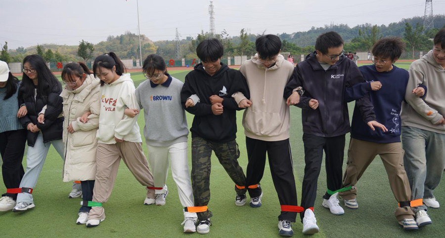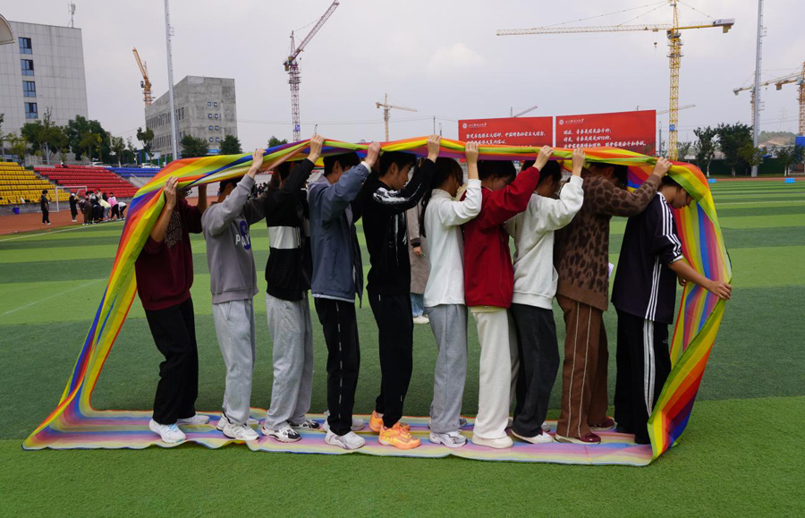 12月7日—14日,线下团体比赛在校园的操场拉开帷幕,迎来了20个学院代表队共200人参赛。比赛包括无敌风火轮、长绳风暴、巨人脚步、旋风跑四个项目,每个项目都紧密结合了心理健康的主题,既考验了同学们的团队协作能力,又让大家在轻松愉快的氛围中深化了对心理健康的理解。