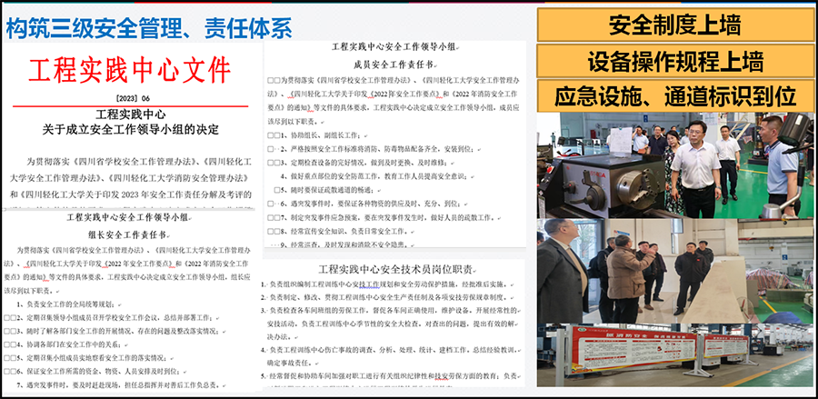 中心始终以“归零”心态持续抓好安全工作,构筑三级安全管理、责任体系,筑牢安全底线。工程实践安全观的核心在于强调安全意识、规范操作和应急处理能力的重要性。通过持续开展消防宣传月活动、安全生产检查、安全知识培训、专题座谈会等多种途径,持续提升中心全体成员的安全生产意识,提升应对突发事件的能力;通过实践准入理论安全考试、安全培训、设备操作安全讲解等系统的安全教育和培训,提升工程实践中的安全意识。以多年来零安全事故的良好成绩保障了实践教学工作的平稳有序开展。