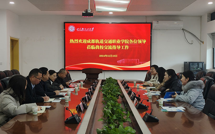 12月18日下午,成都轨道交通职业学院副校长赵楠率队莅临我校进行调研交流,在宜宾校区进行交流座谈。学校党委学工部部长邹国正、招生就业处副处长张述权、自信学院党委书记张艳等参加座谈,会议由邹国正主持。