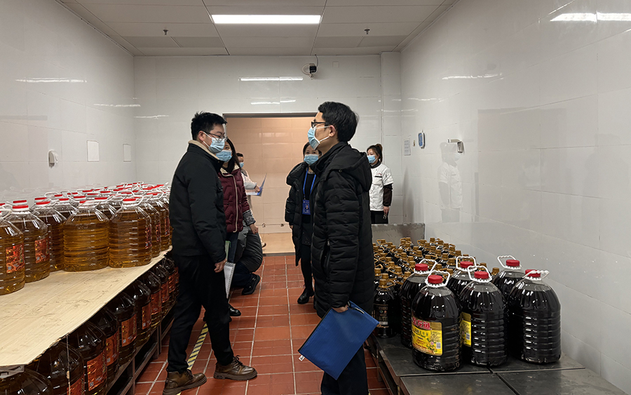 1月7日上午,四川省药品监督管理局二级巡视员赵勇一行莅临我校开展校园食品安全检查,自贡市市场监管局副局长曾继海、药品安全总监吴军胜,学校党委常委、副校长吴亚东及相关人员陪同检查。