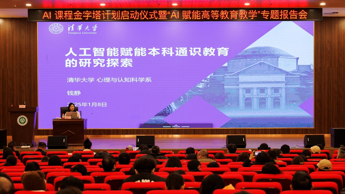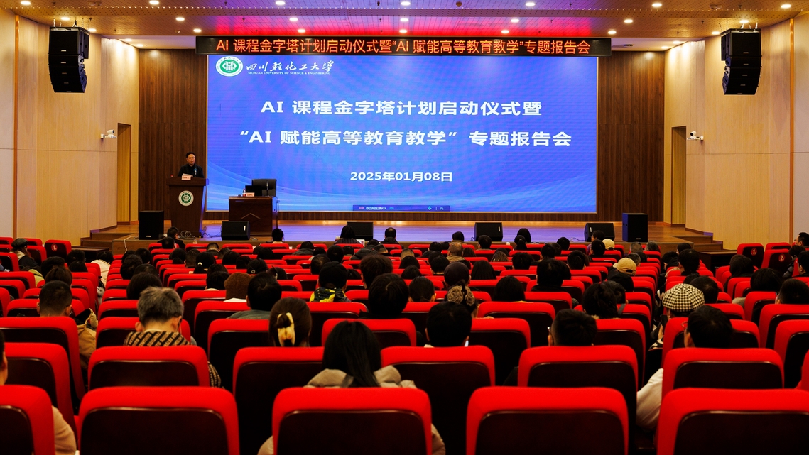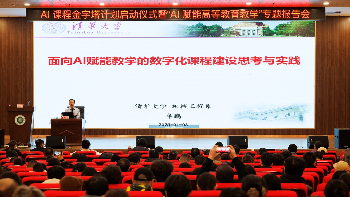 为营造全校教育教学更好地面向技术变革探索氛围,持续提升我校人才培养质量。1月8日下午,我校在李白河校区办公中心学术报告厅召开AI课程金字塔计划启动仪式暨“AI赋能高等教育教学”专题报告会。会议特邀清华大学机械工程系牟鹏副教授,心理与认知科学系钱静副教授,教育部在线课程教育研究中心课程顾问、清华大学学堂在线高等教育业务总监张凯伦作专题报告。党委常委、副校长胡光忠致辞。