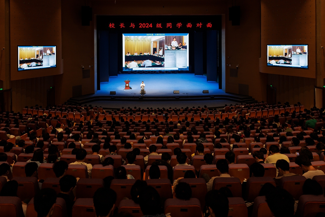 3月26日下午,李白河校区盐都大剧院内座无虚席,千余名2024级新生与辅导员们屏息以待。当一段记录学校历史的珍贵影像缓缓铺开,校长庹先国以亦师亦友的姿态缓步登台,一场关于青春、使命与传承的对话就此启幕。