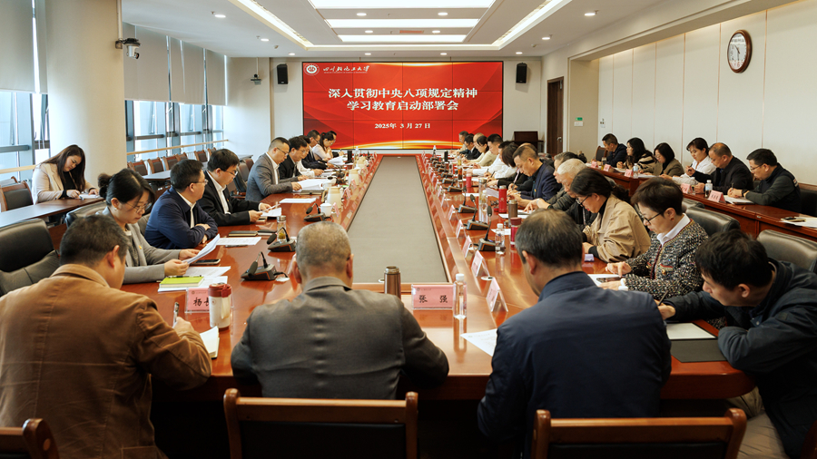 3月27日上午,我校召开党的建设工作领导小组会议,认真学习贯彻中央党的建设工作领导小组会议精神及《中共中央办公厅关于在全党开展深入贯彻中央八项规定精神学习教育的通知》要求,审议《关于在全校开展深入贯彻中央八项规定精神学习教育的工作方案》和《关于成立四川轻化工大学深入贯彻中央八项规定精神学习教育工作专班的通知》,全面部署我校开展深入贯彻中央八项规定精神学习教育工作。校党委书记张力出席会议并讲话,校长庹先国主持会议。校领导班子成员及党的建设工作领导小组成员单位主要负责人参加会议。