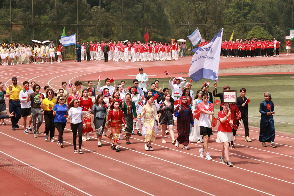 4月9日下午,春光灿烂,紫藤盛放,我校第41届田径运动会在李白河校区与宜宾校区同时开幕。校党委书记张力、校长庹先国分别在两个校区同时发出开幕指令,标志着这一体育盛事正式拉开帷幕。本届以阳光、健康、快乐为主题的运动盛会,将党的二十大报告中加快建设体育强国的战略部署转化为育人实践,在川轻化沃土上铺展开青春与热情交织的壮美画卷。