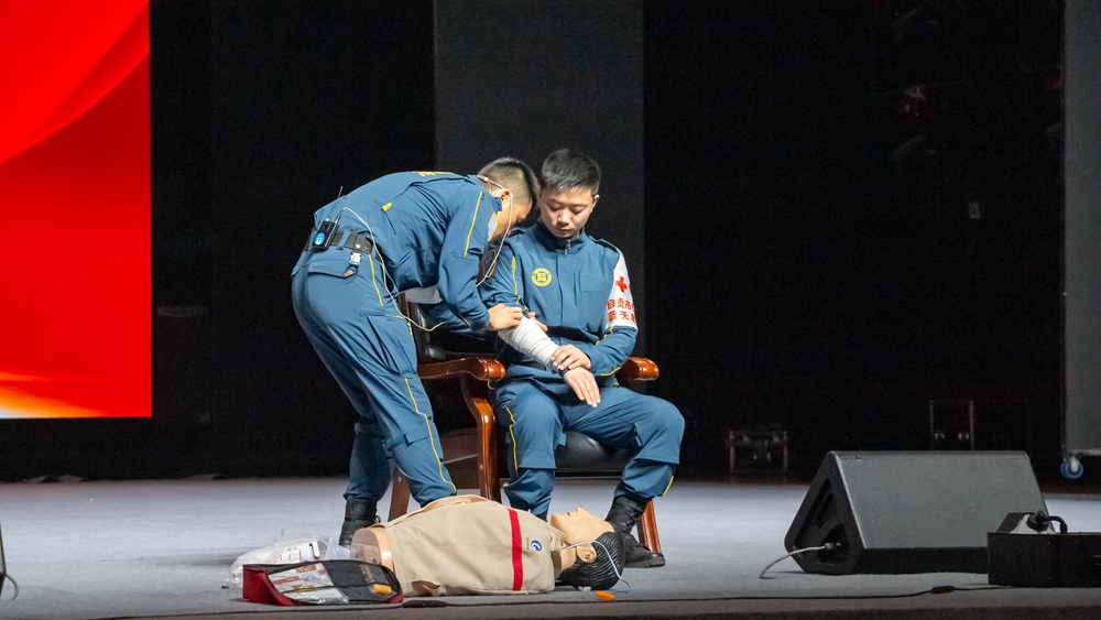演练包括两项核心活动:应急避震和救援示范与应急知识培训。学生在A1、A2宿舍楼进行室内避震演练,警报响起后有序疏散至开阔区域;自贡蓝天救援队队员张文龙带领队员现场演示应急救援技能,并在盐都大剧院开展自救互救应急知识的专题培训,指导师生如何掌握逃生本领。并强调高校人口密集,需严加防范。