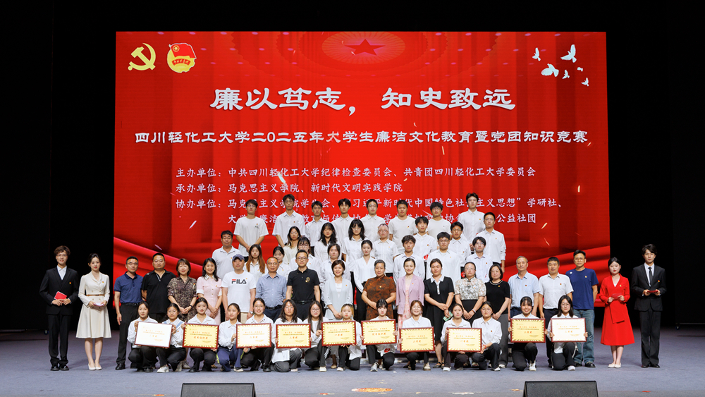 活动中,学生合唱《相亲相爱》舒缓氛围,全体师生共同观看廉洁主题视频,深化“廉以笃志 知史致远”的理解。嘉宾为获奖队伍颁发证书并合影,肯定选手表现。本次活动以廉洁文化浸润心灵、党团知识筑牢思想,呼应全面从严治党战略,树立校园文化新标杆。