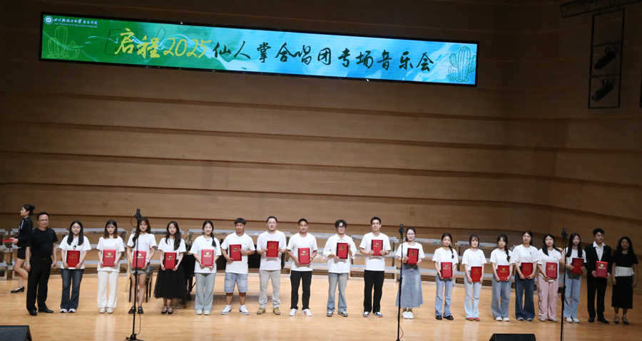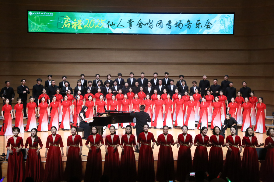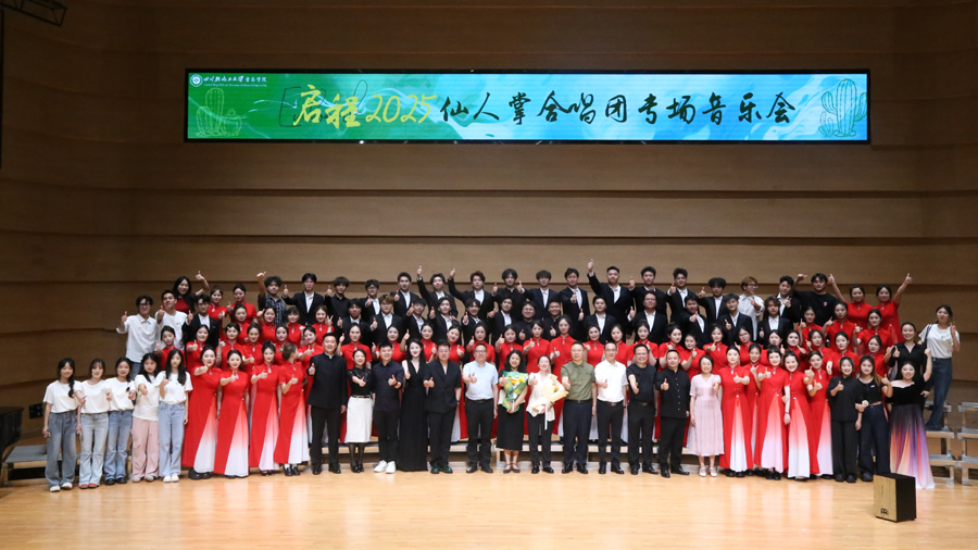 6月5日晚,音乐学院仙人掌合唱团“启程2025”专场音乐会在盐都音乐厅倾情上演。作为2025毕业季重要活动,音乐会以音乐传递对毕业生的真挚祝福。校党委副书记陈一君,校党委常委、统战部部长罗毅,乐山市井研县副县长肖睿及教育局代表、音乐学院党政班子,与600余名毕业生、家长及来自成都等地的合唱爱好者共赴艺术之约。
