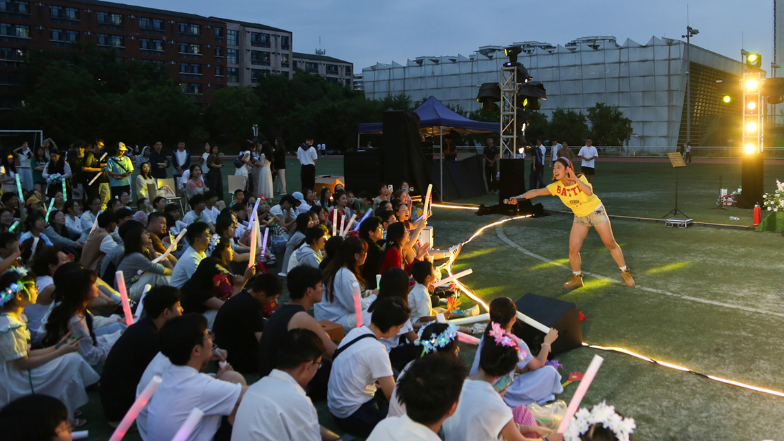 15日晚,青春坐标刻入星轨。汇东校区点燃毕业季的深情告白。《忘记时间》《至少还有你》致敬四年韶华,《稻香》《我们的歌》唱响青春坐标。在《那些花儿》旋律中过往时光重现,三片草地上跃动着同一颗青春心跳。