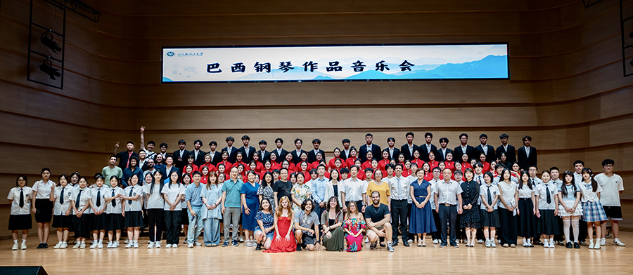 6月11日晚,为庆祝世界葡萄牙语日、深化中巴文化交流,我校在盐都音乐厅成功举办巴西钢琴作品音乐会。巴西钢琴家杜瓦尔•塞塞蒂联袂我校师生献上精彩演出。巴西驻成都总领事馆副总领事卡拉·罗萨尼·佐里奥·切洛蒂、副校长罗惠波,以及国际合作与交流处、音乐学院、外语学院负责人、师生代表和在川巴西留学生共同出席。