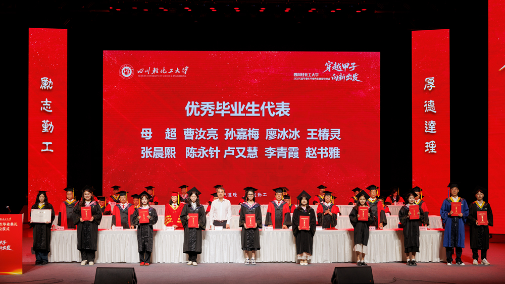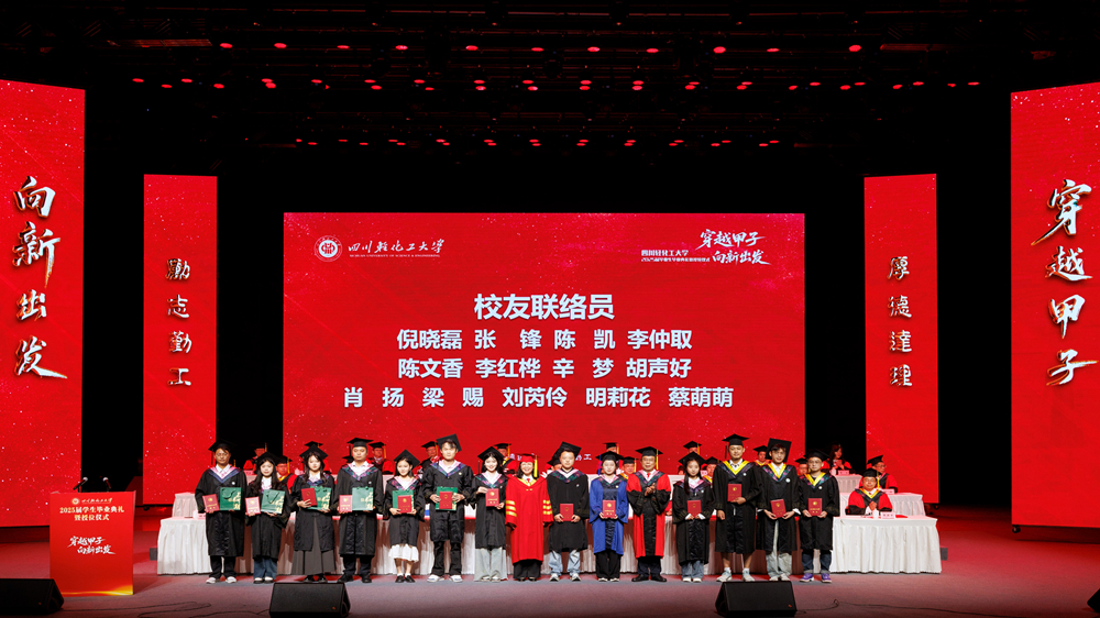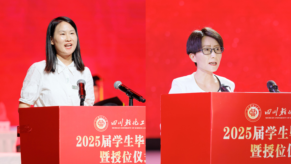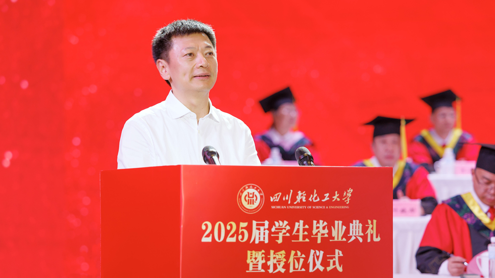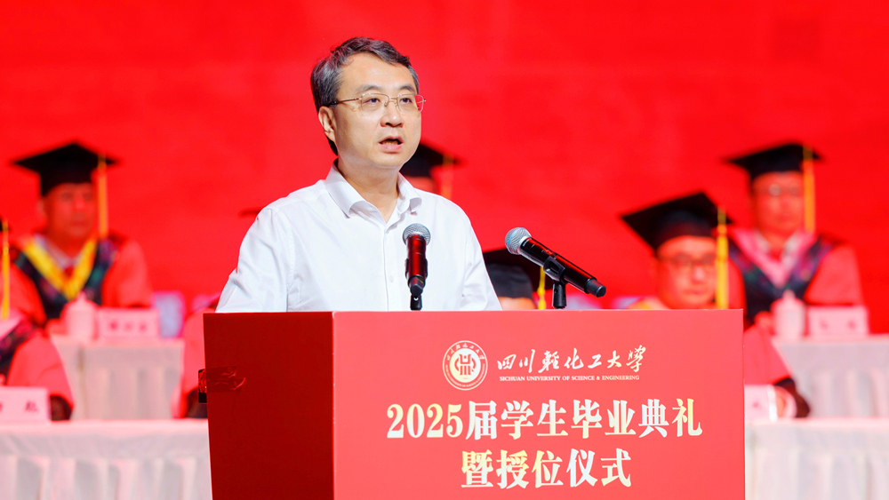 典礼上,毕业生代表展现了在川轻化成材蜕质、迭有进境的成长光谱。音乐学院本科毕业生、退役军人梁赐,以创业带动就业,携百项荣誉诠释“652”之精神;外语学院本科毕业生郑扬,以“雨过天青云破处”的东方美学翻译,架设起文明互鉴的虹桥;化工学院即将踏上博士征途的硕士毕业生刘晓聪,感念课题组在千万次失败中赋予的“破茧之力”;物电学院研究生毕业生苟睿,从专科起步,逆袭至四川大学博士,躬身践行“厚德达理,励志勤工”之校训。毕业生代表的发言,彰显了学校立德树人的丰硕成果。