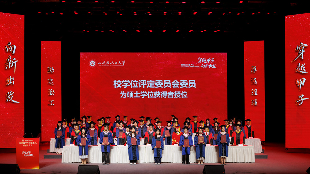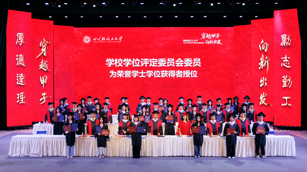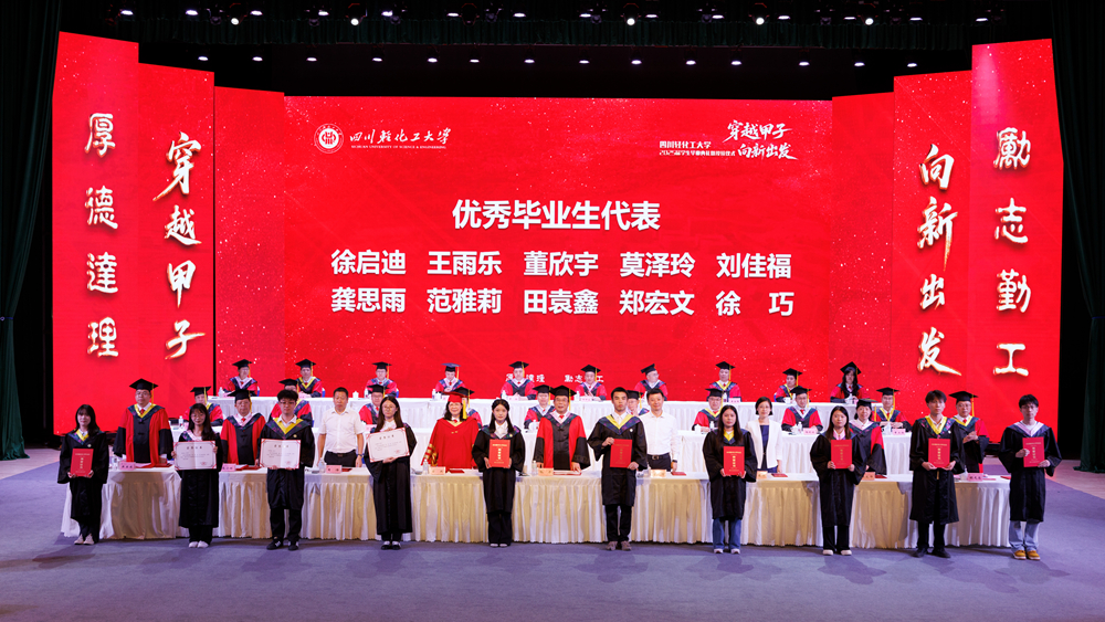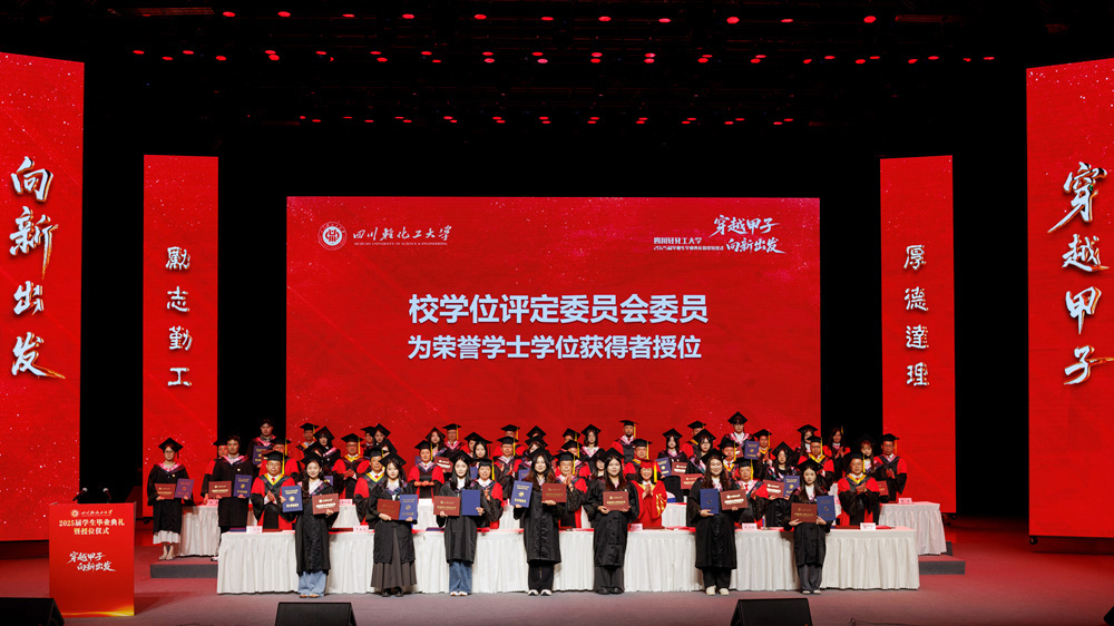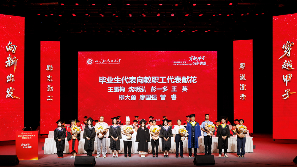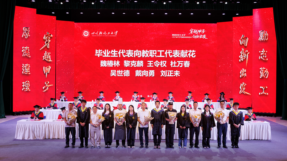 典礼上,毕业生代表展现了在川轻化成材蜕质、迭有进境的成长光谱。音乐学院本科毕业生、退役军人梁赐,以创业带动就业,携百项荣誉诠释“652”之精神;外语学院本科毕业生郑扬,以“雨过天青云破处”的东方美学翻译,架设起文明互鉴的虹桥;化工学院即将踏上博士征途的硕士毕业生刘晓聪,感念课题组在千万次失败中赋予的“破茧之力”;物电学院研究生毕业生苟睿,从专科起步,逆袭至四川大学博士,躬身践行“厚德达理,励志勤工”之校训。毕业生代表的发言,彰显了学校立德树人的丰硕成果。