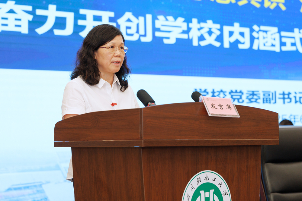 曾英代表学校向大会作工作报告。报告全面回顾了2024年学校主要工作成绩,从党的全面领导不断加强、人才培养质量持续提升、学科建设水平不断提高、师资队伍建设持续推进、对外交流合作持续拓展、管理服务效能扎实推进等六个方面,系统总结了过去一年在教育教学、学科科研、人才引育、校地合作、校园建设、师生福祉、安全稳定等方面取得的显著进展。报告深入分析了学校当前面临的机遇与挑战,明确了2025年学校重点工作任务,并重点部署了六个方面的工作:一是坚持立德树人,持续提升人才培养质量,包括推动本科教育教学综合改革、优化研究生教育培养体系、完善现代产业学院建设机制、提升招生就业工作质量;二是坚持特色发展战略,全面推进学科建设高质量发展,包括优化学科布局、加快学科建设发展、全面推进“申博”工程;三是坚持创新引领,持续产出高水平科研成果,包括加强有组织科研、推进科研平台优化升级、推进科技成果转化;四是坚持引育并举,持续增强人才队伍活力,包括加强师德师风建设、加大高层次人才引育;五是坚持开放办学,持续深化对外合作深度,包括深化国际合作交流、深化校地校友工作、深化与华东理工大学全面合作;六是坚持依法治校,持续提升内部治理水平,包括完善内部治理体系、推进平安和谐校园建设、高质量举办60周年校庆。