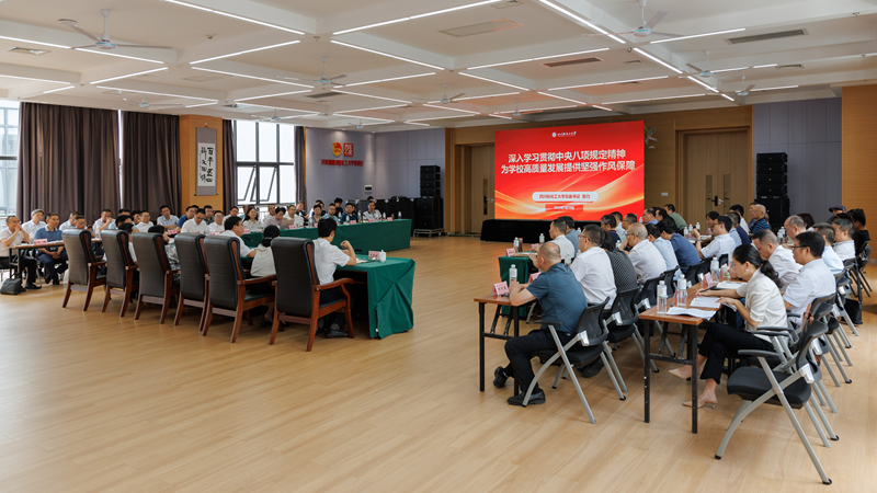 报告通报了学校党委在深入贯彻中央八项规定精神学习教育方面的具体实践和成效。学校成立了工作专班,构建起全链条工作机制,结合实际制定了详细工作方案,并通过编印学习资料、开展“理论宣讲+案例解析+互动研讨”等“送纪上门”活动,为全校20余个基层党委和万余名师生党员定制“学习套餐”。校党委理论学习中心组率先垂范,举办领导干部读书班和警示教育会,组织观看警示教育片,发放学习材料,将学习教育与党员基本培训紧密结合,深化以案为鉴、以案促改。