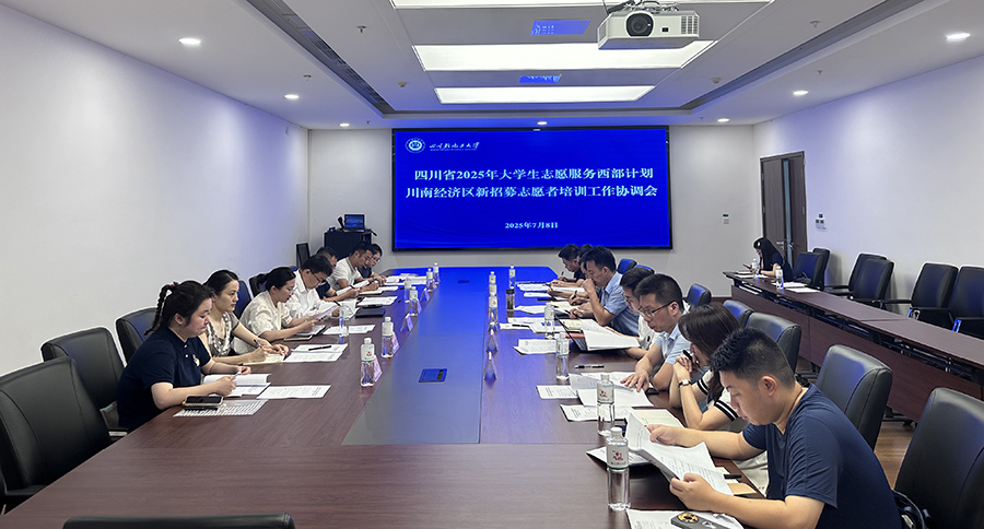 7月8日下午,四川省2025年大学生志愿服务西部计划川南经济区新招募志愿者培训工作协调会在我校李白河校区召开。会议旨在确保培训顺利实施,校党委常委、副校长吴亚东,共青团自贡市委书记杨荦、副书记杨永秋出席,校团委书记郁毅主持会议。