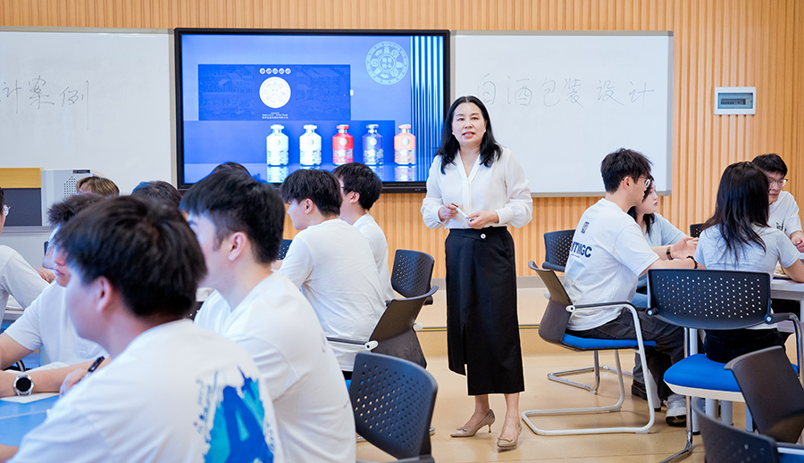 基于学生对企业真实项目有天然热情的深刻认知,张玲玉成功构建起产教融合生态圈:一方面,通过校企融通机制,与五粮液集团、自贡彩灯公司、浪尖设计等地方龙头企业共建省级工业设计中心及校级研究中心,联合组建产品创新设计研究团队和校企教学团队,并打造出聚焦智能装备、白酒包装、文创家居、彩灯灯具四大领域的主题工作室;另一方面,推行理实赛创一体培养模式,以企业真实项目实训和学科竞赛双轮驱动,通过建立专业实践基地,打造菁英设计集训营、智慧无界大师讲堂、彩灯产业论坛等特色平台,形成企业采纳应用优秀成果,未采纳方案转化为获奖竞赛作品的高效闭环,持续激发学生的创新激情与能力进阶。