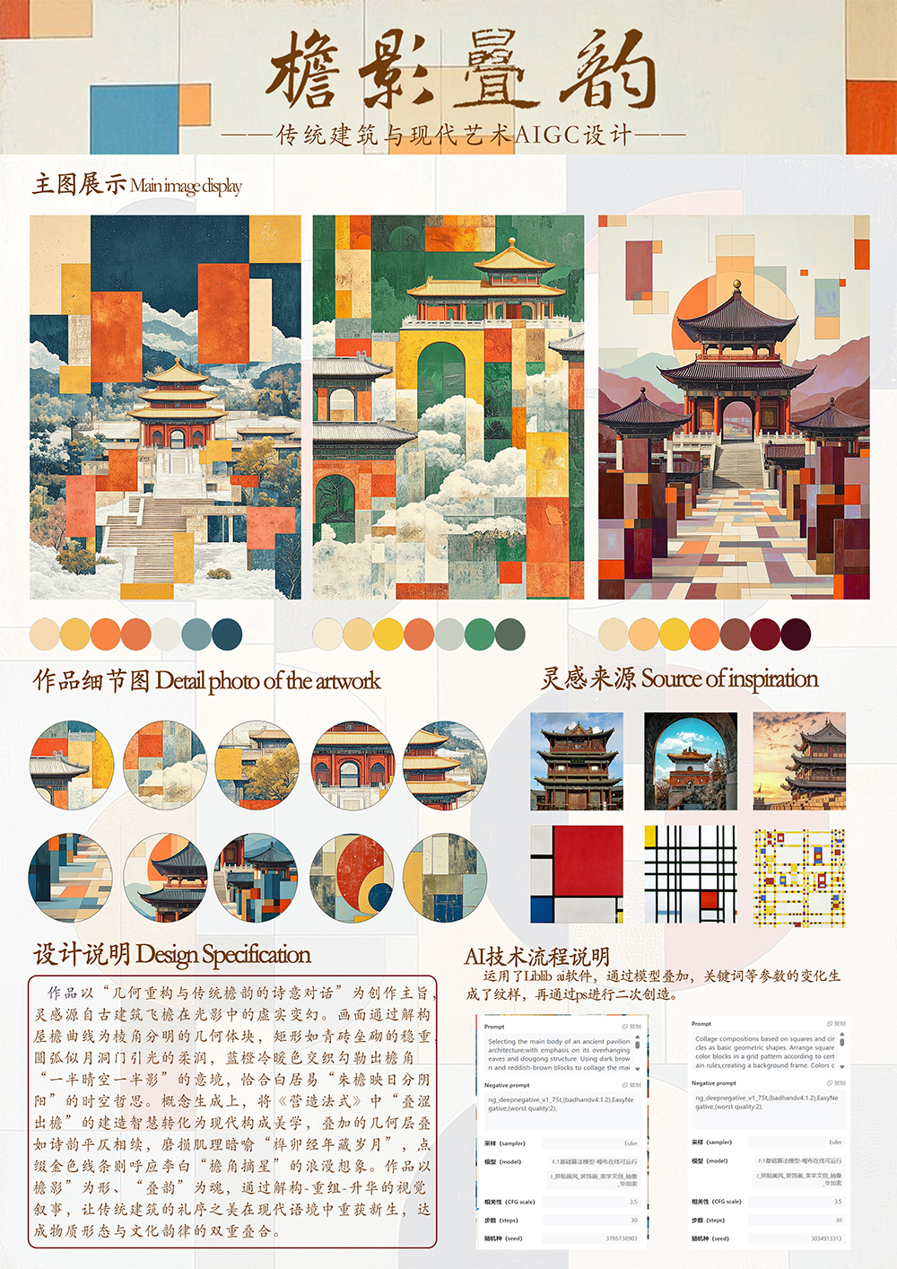 7月9日,该赛事“‘人工智能+纹饰及时尚周边设计’课赛结合邀请赛”决赛在浙江理工大学临平校区落幕。我院环境设计系杨乔昕作品《檐影叠韵》获全国一等奖,陈红丽《四十古韵》、刘雨欣《山居翠色》获全国二等奖。