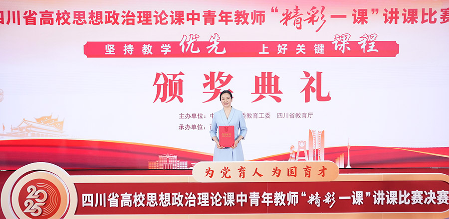 7月21日,2025年四川省高校思想政治理论课中青年教师“精彩一课”讲课比赛决赛在西华师范大学落幕。我校马克思主义学院教师屈艳凭借深厚的理论功底、创新的教学设计与扎实的教学技能,在激烈竞争中脱颖而出,荣获《思想道德与法治》课程(本科组)一等奖,创造了我校在该赛事历史上的最好成绩。