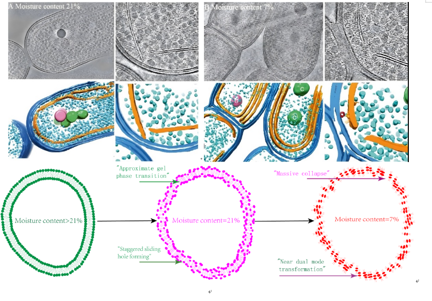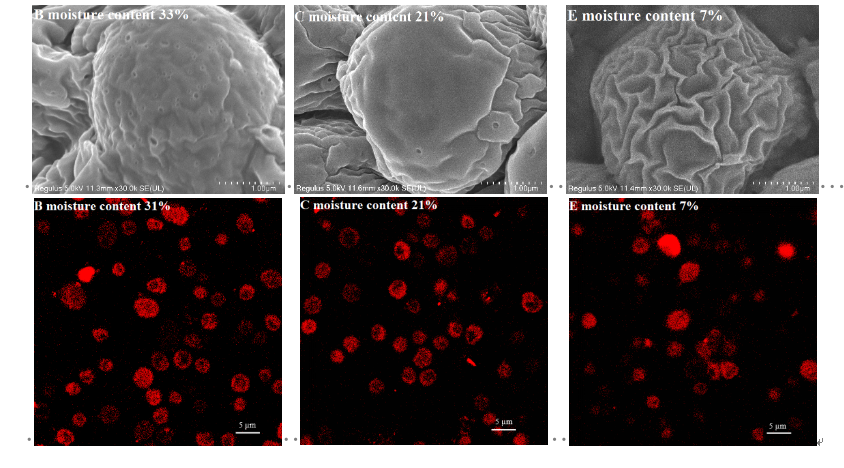 当前,学界对优质白酒酵母的研究,普遍是在“单液滴模拟实验”所得间接样本的基础上进行微米尺度下检测,未能在分子尺度下直接揭示其喷雾干燥过程微纳损伤机理,进而无法有效指导喷雾干燥工艺及装备的优化,无法兼顾高效、高存活率和低成本干燥优质白酒酵母,严重制约高端白酒行业大规模发展。该论文,开发了微生物喷雾干燥实时采样及无损保藏系统,实现了对酵母等微生物喷雾干燥过程的“直接研究”,为后续对微生物喷雾干燥的直接准确研究奠定了坚实的基础。该论文,创新性的设计了FESEM、LSCM、Cryo-TEM+ET等检测实验,从微米到纳米逐步直接观测了MSJA的干燥损伤,并结合分子生物学分析在分子尺度下揭示了MSJA喷雾干燥的微纳损伤机理。这一研究,既能为MSJA喷雾干燥工艺及装备的优化设计提供指导,实现兼顾高效(t≤5s)和高存活率(Qv≥82.24%)干燥MSJA,从而促进高端白酒行业高质量发展的目标;又能为后续对其他微生物的高效、高存活率干燥提供指导,有助于推动微生物干燥包覆领域的发展。