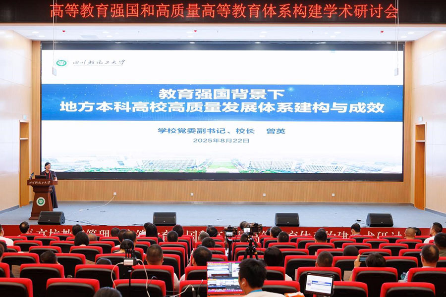 校长曾英为开幕致辞,并作题为《教育强国背景下地方本科高校高质量发展体系的建构及成效》的主旨报告。她在致辞中指出,建设高等教育强国是关乎国家发展全局的战略抉择,高校应加快推进从规模扩张向内涵发展的转变,切实承担起时代赋予的使命。报告中,曾英从地方本科高校的发展困境出发,系统介绍了学校以“五大融合”为核心的战略体系和构建“五大学科群”的举措,并分享了学校在内部治理、资源优化及对口合作等方面取得的成效。曾英表示,川轻化正以深化综合改革为动力,厚植造就拔尖创新人才的沃土,着力形成教学基础、科研创新和人才培养的相辅相成、可持续发展的良性循环。
