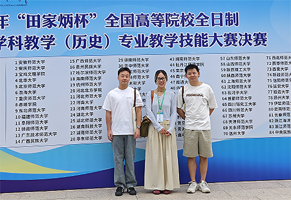 我校人文学院历史系学科教学(历史)专业研究生雷涛、佘双兵在指导教师王潇带领下参赛并取得优异成绩。雷涛获决赛三等奖及“优秀教学设计奖”,佘双兵获“优秀教学设计奖”,展现了我校学子的专业素养与教学能力。