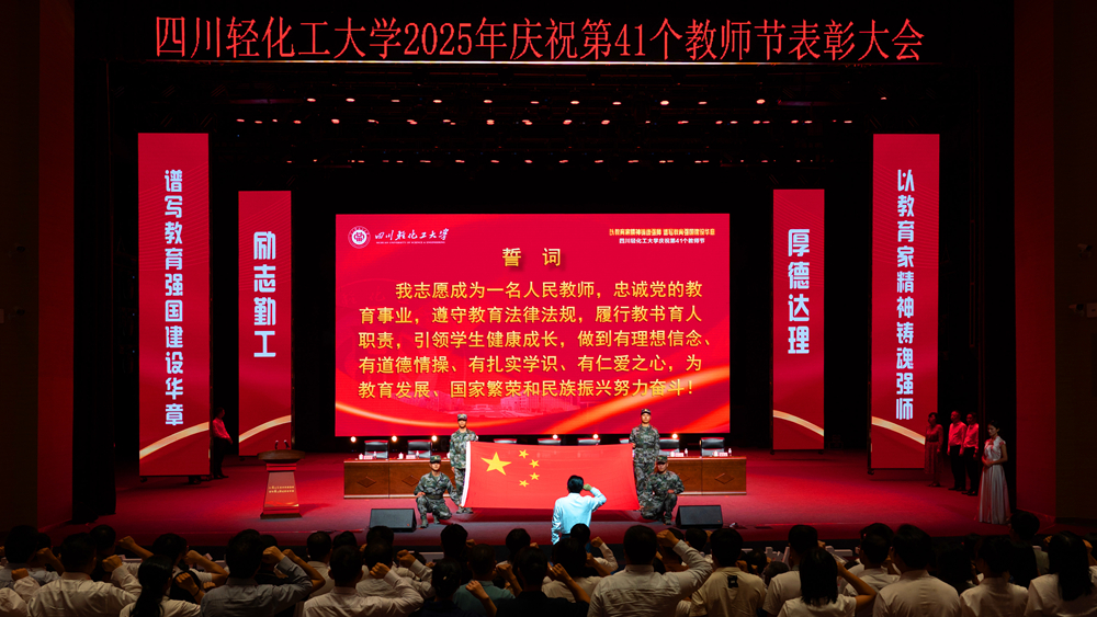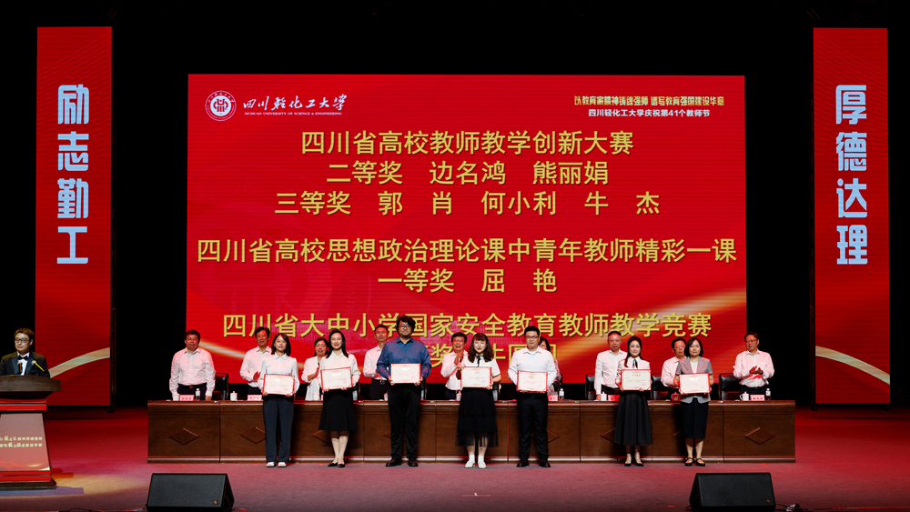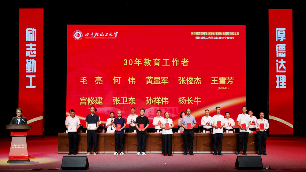 校党委书记张力在讲话中向全校教职员工致以节日问候,向社会各界长期关心支持学校发展表示感谢,并回顾了一年来的办学成就。他指出,过去一年,学校坚持以习近平新时代中国特色社会主义思想为指导,全面贯彻党的二十大和二十届二中、三中全会精神,弘扬教育家精神,坚决落实省委、省政府决策部署,加强党对学校的全面领导,成功召开了学校第二次党代会,选举产生了新一届学校党委班子,确定了“1257”发展思路,学校进入全面深化改革、推进内涵式高质量发展的新阶段。成绩的取得,凝聚着每一位教职员工的努力和付出,希望全体教职员工再接再厉、团结拼搏。他向全校教师提出三点希望:一是要坚定理想信念,对标先进,做师德高尚的人民教师;二是要提升教学科研能力,服务社会,做求是创新的人民教师;三是要永葆仁爱之心,甘为人梯,做无私奉献的人民教师。学校党委将始终以教师为本,持续推进人事制度改革,稳妥推进岗位聘任,系统开展教师精准化、专业化培训,着力建设一支高素质专业化教师队伍。同时进一步优化办公实验用房、科研仪器设备等资源配置,坚持向一线老师倾斜,努力为老师们创造更好的教学科研条件;优化校区通勤车运行机制、改造教师休息室、提升伙食质量等,切实改善老师们的工作、学习和生活条件;努力让每一位老师工作有条件、干事有平台、发展有空间、付出有回报。他强调,回首过去,我们赓续甲子初心、辛勤耕耘;展望未来,我们勇担育人使命、责任重大。学校将始终坚持以习近平新时代中国特色社会主义思想为指导,全面贯彻党的教育方针,落实好学校第二次党代会精神,推进学校内涵式高质量发展再上新台阶,为教育强国、强省建设贡献川轻化力量。