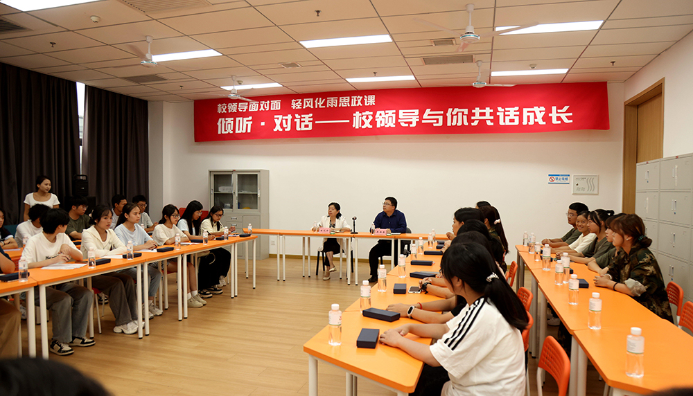 9月28日下午,我校李白河校区一场以“倾听•对话——校领导与你共话成长”为主题的特殊思政课在“一站式”学生社区温馨开展。学校党委副书记陈范华,党委常委、副校长吴亚东与30名大一新生代表围坐一堂,共同开启了一场关于成长、责任与未来的深度对话。