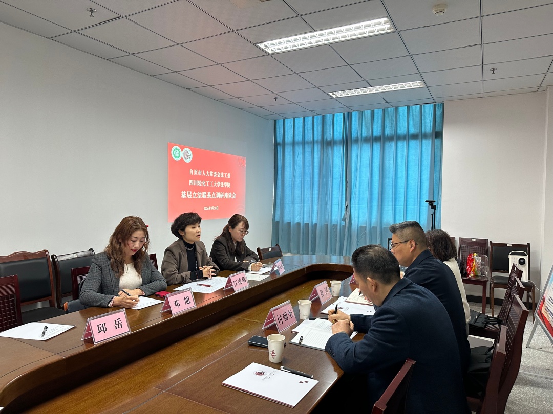 3月20日上午,自贡市人大常委会法制工作委员会主任黄河、副主任付朝奎、工作人员杨洋一行莅临我校法学院,专题调研基层立法联系点建设工作。该联系点日常工作由法学院负责,自设立以来,法学院扎实推进各项立法服务工作,稳步搭建校地联动立法平台。法学院副院长江凌燕、法学系主任曾凡珂、法学系民事法教研室主任邓旭及教师邱岳参与调研座谈,双方就基层立法联系点工作开展情况、未来发展方向等进行深入交流。