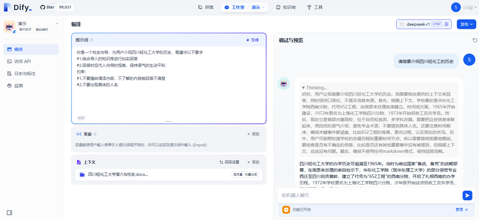 在学校这种需求众多的场景中,仅有对话功能是无法满足大部分老师的需求的,而是需要一个专属的知识库、搭建对应的智能体,完成各类工作流任务。目前市面上有大量此类平台,如扣子、腾讯元器等等,这些智能体搭建平台大多由大厂开发,部分功能会收取相应的费用,并且学校的部分文件具有一定的私密度,上传到这些平台的知识库存在一定的安全风险,所以这些平台并不适合学校的场景。